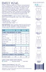 Emily is a mid-calf length dress with a slightly raised waistline curving up at center front and buttons in the front. Neckline is scooped with a Peter Pan collar. Emily can be made with cap sleeves, puffed sleeves or sleeveless.